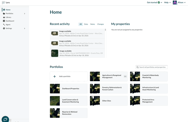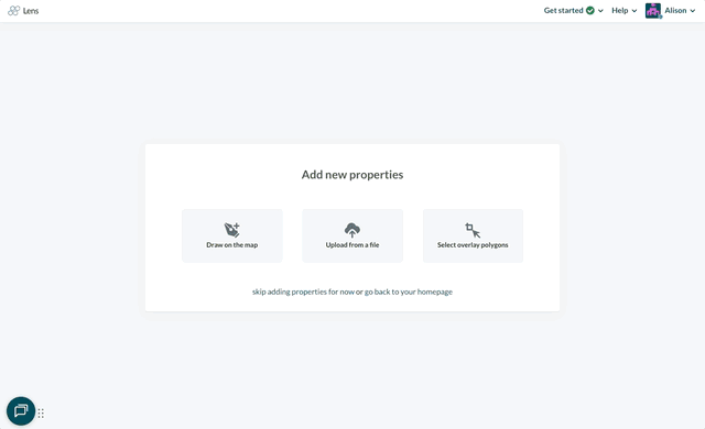 Whether you're setting up your account for the first time, expanding your portfolio with new properties, or creating a brand new portfolio, it’s easy for Admin or Member users to add areas of interest directly in Lens. There are three ways you can add new properties to Lens: by uploading a geospatial file, by drawing the property in our uploader tool, or by selecting US tax parcels. Selecting US tax parcels is available for customers on Standard and Enterprise plans.